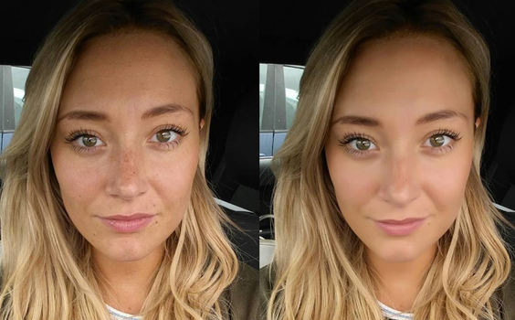 The blogger shares a natural image without a filter and the default setting and the differences are striking. With the automatic feature, all freckles are eliminated, skin is smoothened and her eyes seem brighter.
