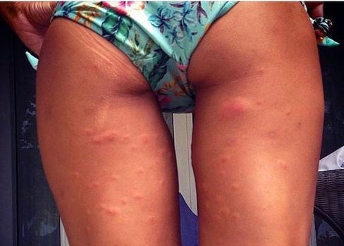 Yup, it’s Myleene Klass’s mosquito-riddled backside posted online for all to see.