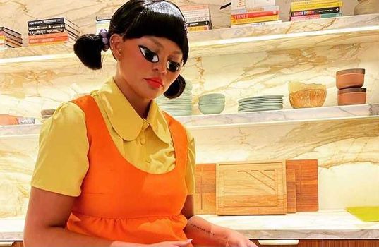The TV personality shared images on Instagram from the party, where she dressed up as the infamous ‘Red Light, Green Light’ doll from Netflix’s hit series.