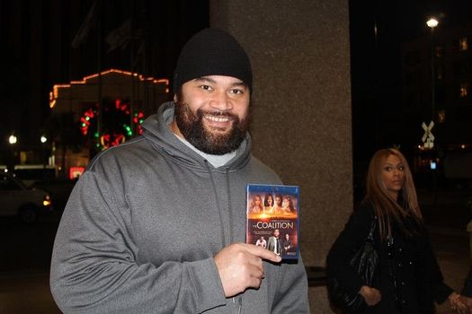 Reddit user ralstyr009 posted this photo of Baltimore Ravens star Haloti Ngata posing with a DVD online, but look at the woman in the background.