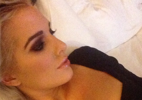 She captioned the snap, which showed off her cleavage: “Watching love actually in bed love this film loved Ireland tonight so many pretty girls there 🙂 sleep sleep”.