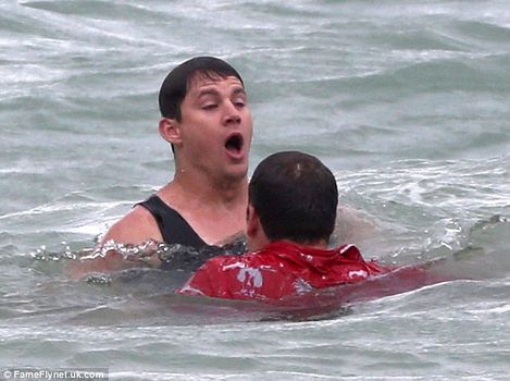 Step Up star Channing appears to have rescued Jonah from the sea in a scene from the upcoming movie.