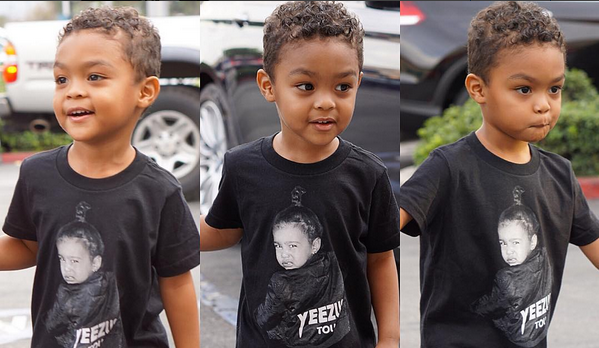 Taking to Instagram to share an image of his 3-year-old son Sire wearing a t-shirt with North’s likeness on it, the Candy Shop rapper wrote: “My Dad’s crazy, he said I get all his money. So I can only date hot girls that have their own.”