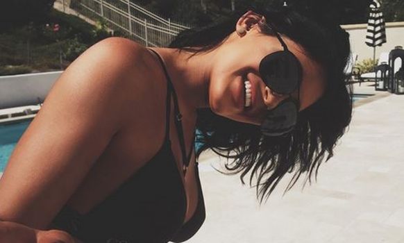 Reminiscent of her older sister Kim Kardashian, Kylie showed off her figure while relaxing beside the pool at her home.