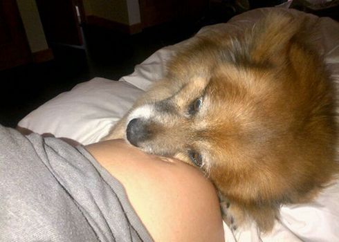 This week the actress shared a picture of her dog lying up against her baby bump on Twitter (see above).