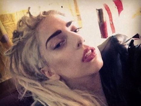 Gaga seems delighted to showcase her blonde dreads against a dramatically-dark pair of eyebrows.