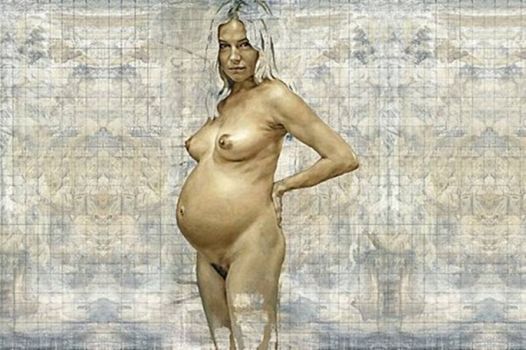 Sienna posed for this portrait when she was heavily pregnant. This week it is gracing the walls of an exhibition in Germany. Art or just too much?