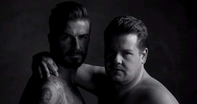 The spoof advert below opens with David Beckham giving the camera a smouldering stare before James joins him on screen.