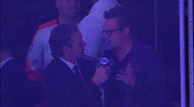 As you may or may not be aware, Matthew Perry’s newest outing Go On was cancelled by NBC at the end of last week. Matt decided he would go out that night and watch some hockey, only to be interviewed by Fox News Reporter Dylan Moriarty.
