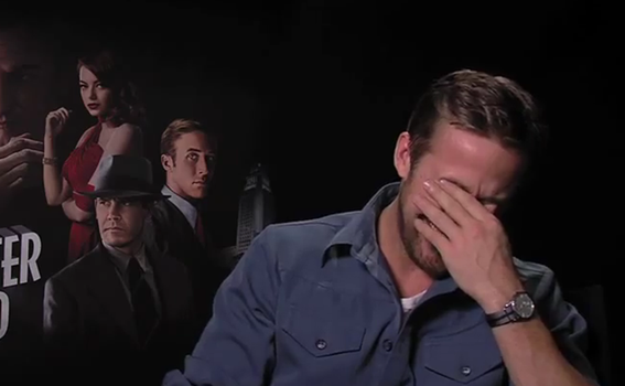 When Drake asks him, “Would you wash dishes with your own face?”, Gosling dissolves into laughter, hiding his face and crying: “It’s like looking at the sun – I can’t stare directly at it”.