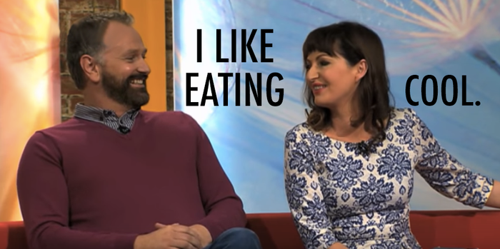 It’s the big finale: The taste test! The presenters gather round, waiting for the chef’s signal to pounce. They arm themselves with cutlery as the chef gives another quick rundown of what they’ve “prepared”, then invites them to dig in. There’s audible groans and heavy breathing, as they tuck into the grub. The presentesr rave about the combination of flavours, while the token comedian jokes about how it’s awful and they should get rid of it (into their belly lolololol!). The presenters will be fired unless they end the show with “Now we’re off to finish this”, followed by a mouthful of food and a wink.