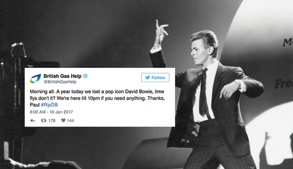 British Gas jumped on the bandwagon and sent out a tweet that has caused offence to many of Bowie’s followers.