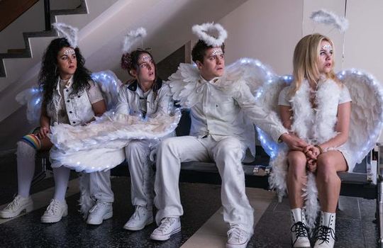 However, after concocting a sob story to tell on TV, Michelle managed to come through with VIP tickets for her gang, and they donned some swan-like angel costumes for the evening and got going.