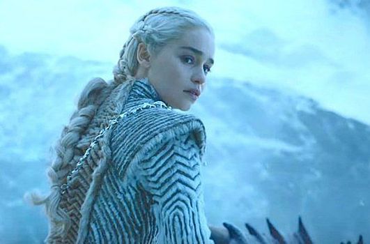 Another scene shows Emilia, in her trailer, reading the “final script for the final season of Game of Thrones“.