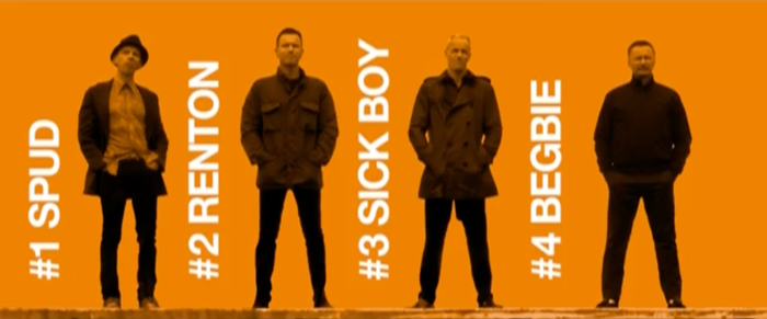 The 40 second clip mimics a scene from the first movie, where we see Renton, Sick Boy, Spud (Ewen Bremner) and Begbie (Robert Carlyle) standing on a train platform as a train passes.