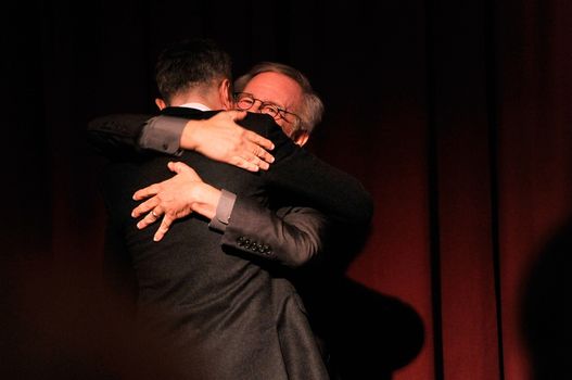 Day Lewis turned down the role, but Spielberg did not give up, instead setting to work on a new screenplay. A second script was also turned down by the actor, but it appeared the third time was indeed the charm, as the star, named this year as ‘The World’s Greatest Actor’ by TIME magazine, finally accepted the role. The picture above shows the pair embracing at Monday’s award ceremony.