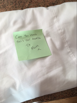 Jason first shared the note his mum left him which read, “Can you hang this out please, TA Mum x.”