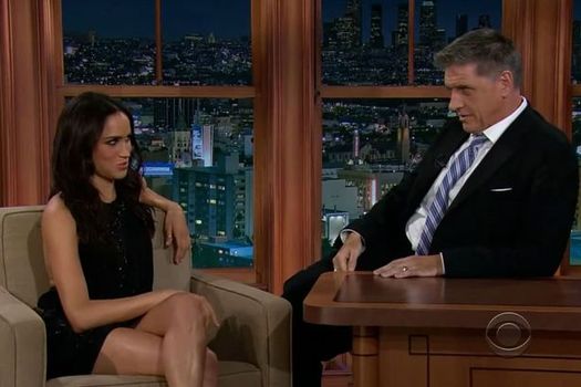 From 2013, the clip shows Meghan being interviewed by the then-host of The Late Late Show in the US about her role in Suits.