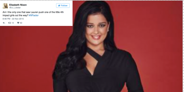 Am I the only one that saw Lauren push one of the little 4th impact girls out the way? #XFactor