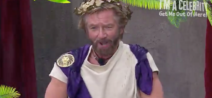 “You’re now gladiators and your fate will be decided by a new camp leader. All hail the Emperor,” Dec says, before the curtains on the balcony separate and Noel steps out in a Roman-inspired outfit.