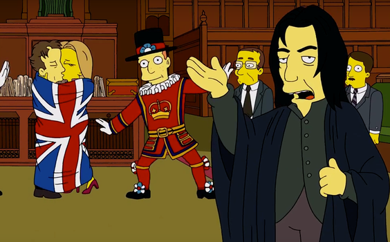 In the clip, Homer, Bart and co. are watching a classic British rom-com that notes all that is cheesy but enjoyable about the genre.