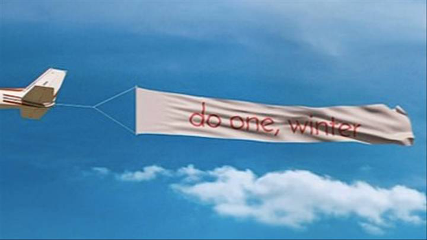 It then shows the banner attached to the plane, which reads ‘do one, winter’ and is written in the typical Love Island font.