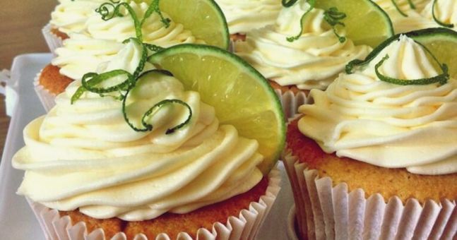 - Pipe on to the cakes and add a slice of lime and some lime zest to decorate.