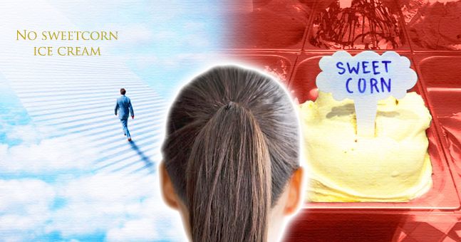 I ordered a scoop of sweetcorn and felt the hairs on the back of my neck stand up in unison. This isn’t God’s way. Jesus didn’t die so we could put sweetcorn on a pizza, nor in our ice cream.