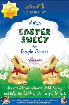 Pick up a delicious 10g Lindt Gold Bunny for a donation of €1, or look out for the Lindt Gold Bunny Easter Hunt Packs which will also be available at the Roadshows. Each hunt pack contains everything you need to enjoy your very own Lindt Gold Bunny Easter Hunt at home. Hunt packs retail at €10 each with all proceeds and donations going to Temple Street.