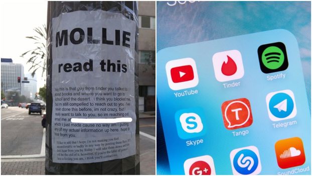 Undeterred by the obvious rejection, he has taken to the streets of LA to erect public notices asking Mollie to reinstate contact.