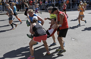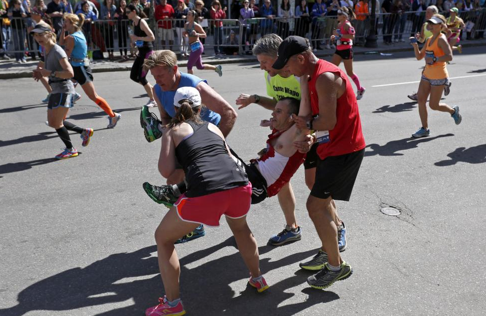 Runners help each other at the Boston Marathon (Pic: Dominick Reuter)
