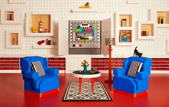 There are Lego chairs, Lego tables, Lego plush animals, a pool filled with Lego, a mattress thankfully not made of Lego, a Lego kettle, and a TV made from (you guessed it) Lego.