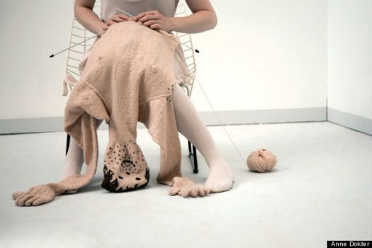 Artist Noortje de Keijzer manufactured her own boyfriend with her project My Knitted Boyfriend. The knitted art piece serves as a cushion to kiss, hug and cuddle – replacing the loneliness of single life in every day situations with a woolly friend.