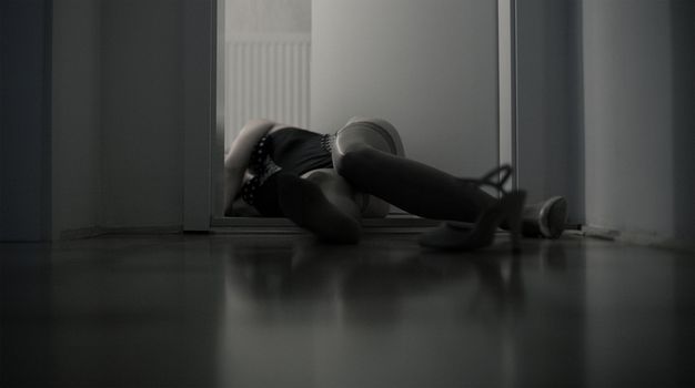 I walked in and my girl was on the floor balled up in a fetal position covered in a bathrobe. I walked over to her & she was shaking