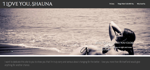 ‘I Love You, Shauna’ is a one-stop sloppy outpour of love that may leave some a little queasy. Sadly, it appears that the site is under some maintenance but thankfully the lovely folk over at Jezebel managed to get some of the details before this ex probably realised it was a tad too much. Just a tad.
