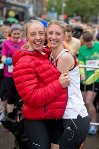 Sophie Wickham and sister Charlotte Gillick keep warm before the race 1/6/2015