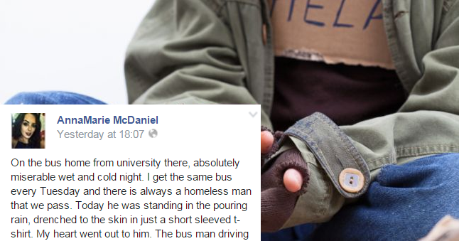 According to Belfast Live, Anna Marie McDaniel was travelling home from university when she spotted the same homeless man she usually sees on her route.