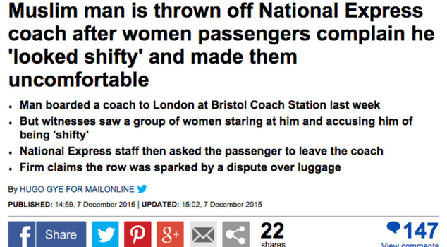 According to i100, the original story referenced a witness who said the man was asked to get off the London-bound National Express bus in Bristol because he was Muslim.