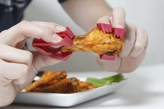 Basically you simply pop them onto your fingers and you’re able to pick up food like buffalo wings, sushi and pork ribs with ease.