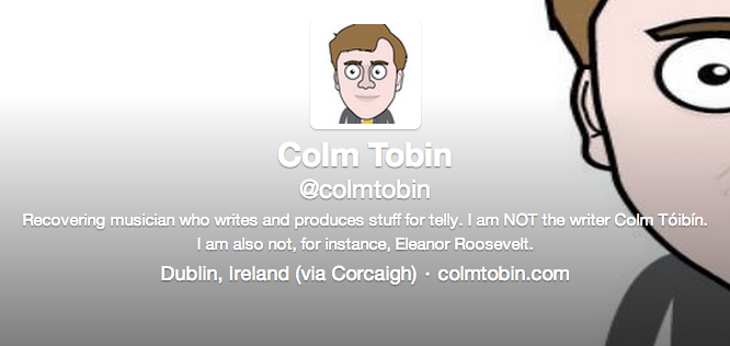 One account that has us favouriting and retweeting posts is Colm Tobin‘s.