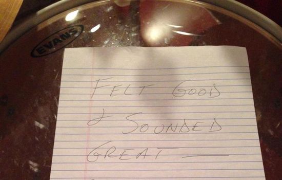 When he returned to the drum kit, he found this lovely note from his Dad!