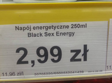 Occasionally, we find that a translation for a certain product doesn’t quite explain exactly what it is. Take this energy drink for instance, we’re pretty sure they’re not making a product called Black Sex Energy.