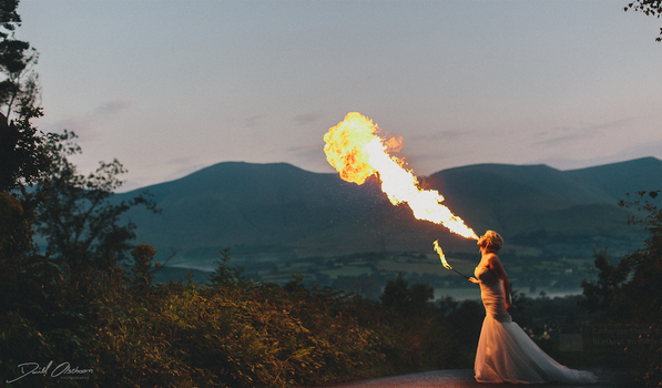 In an unusual turn, the entertainment included an after-dinner fire-breathing show. Already a talking point, but we can only imagine how jaws dropped when the bride herself stepped up! It turns out Jade had spent weeks learning how to breathe fire, and her new husband was none the wiser.