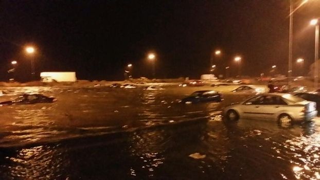 In Salthill, a car park beside the aquarium has become flooded along with some of the cars that were parked in it. The car park itself is just across from the prom in Galway which is without any massive barriers to the ocean.