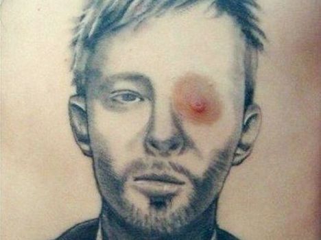 A Reddit user called streeter5000 posted this image to the site last night of a tattoo depicting singer Thom Yorke of Radiohead. What we can’t decide is whether this was really clever, or really stupid.