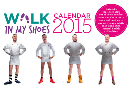 The ‘Walk in My Shoes’ 2015 calendar has taken chefs out of the kitchen and into funky shoes to promote positive mental health. The calendar features 12 of Ireland’s top chefs, 12 delicious recipes, 12 inspirational quotes and 12 great pictures- photographed by Ireland’s most influential photographer Barry Mc Call and styled by Courtney Smith. The calendar will sell online on walkinmyshoes.ie for €12 and in Fitzpatrick’s Shoes at no. 76 Grafton Street.