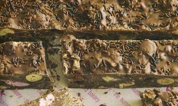 3. Press the mixture into a baking tray (33 x 23 x 5cm tray, lined with greaseproof paper), using a tablespoon to flatten and compress it. Sprinkle the chocolate vermicelli all over the top. Leave to cool completely, then cover and refrigerate overnight.
