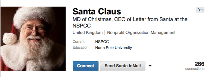 Yes, Father Christmas has set up a LinkedIn profile and it is wonderful.