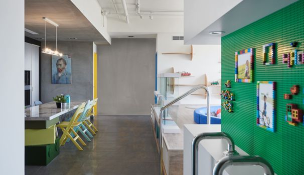 The walls are made out of the signature Lego green boards, allowing the owners to customise literally every inch.