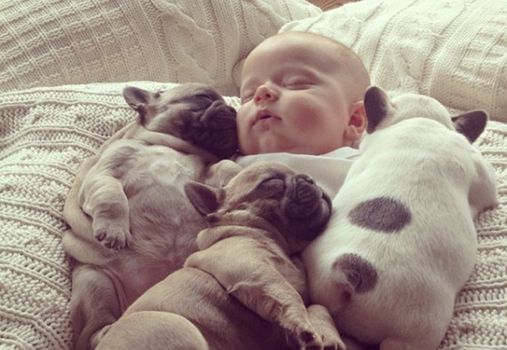 In a viral photo that has taken the internet by storm, Cindy Clark, a French Bulldog Breeder from Pennsylvania, has posted an image of a baby sleeping with some French Bulldog puppies online.